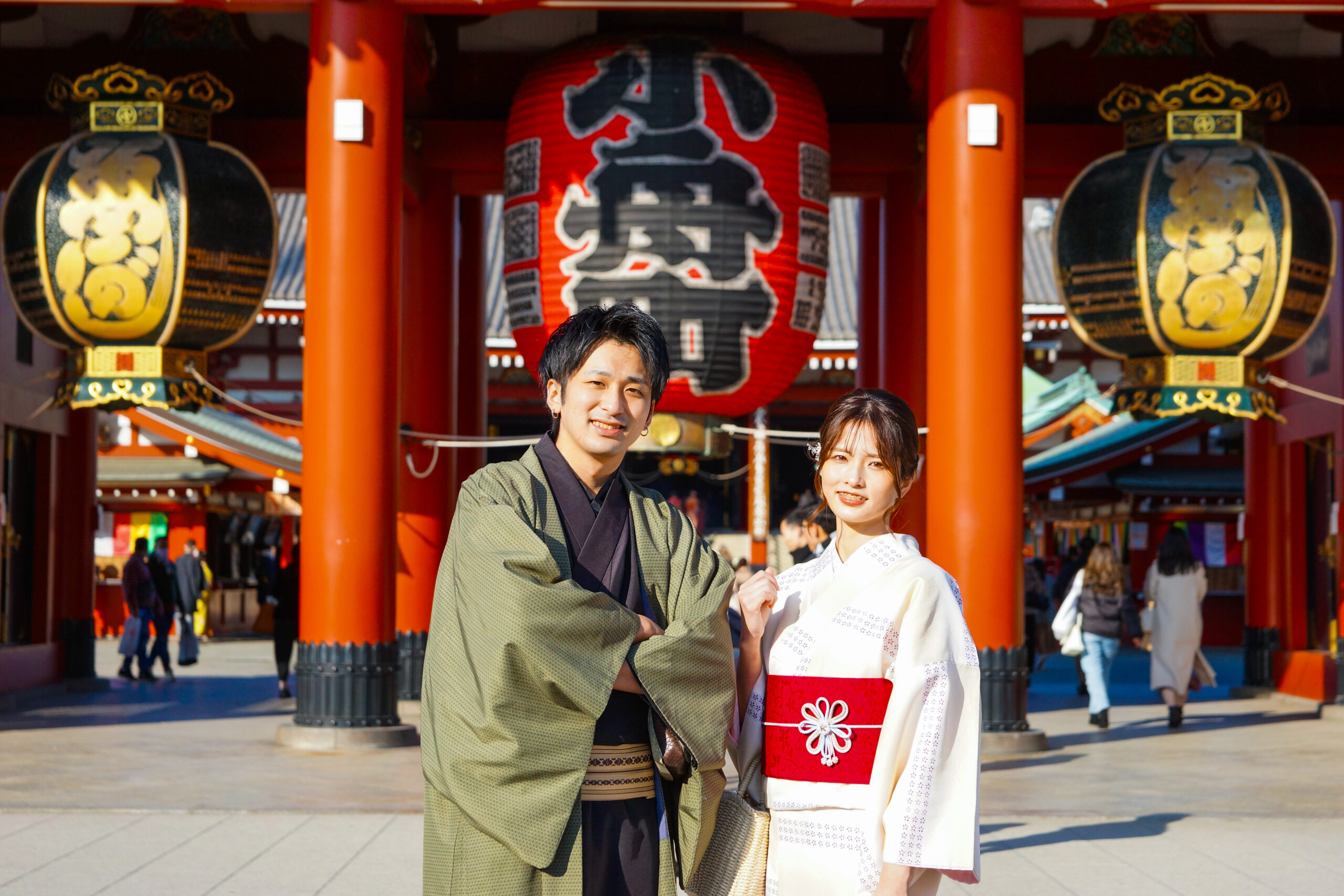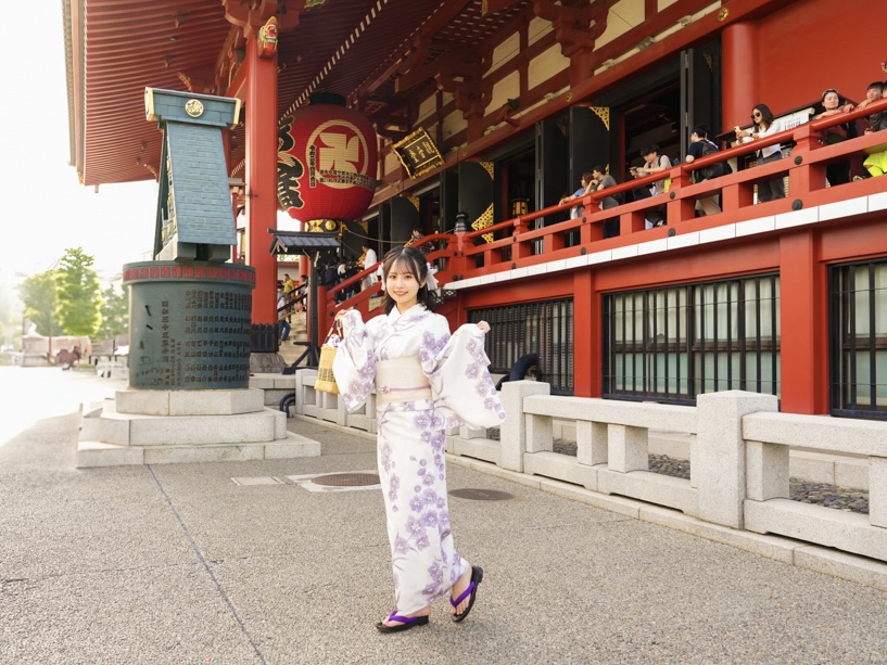 浅草到着後すぐ着替えて、雷門前で写真撮影 → 仲見世通りを散策 → 浅草寺参拝。 移動を減らしたい方に人気のパターンです。