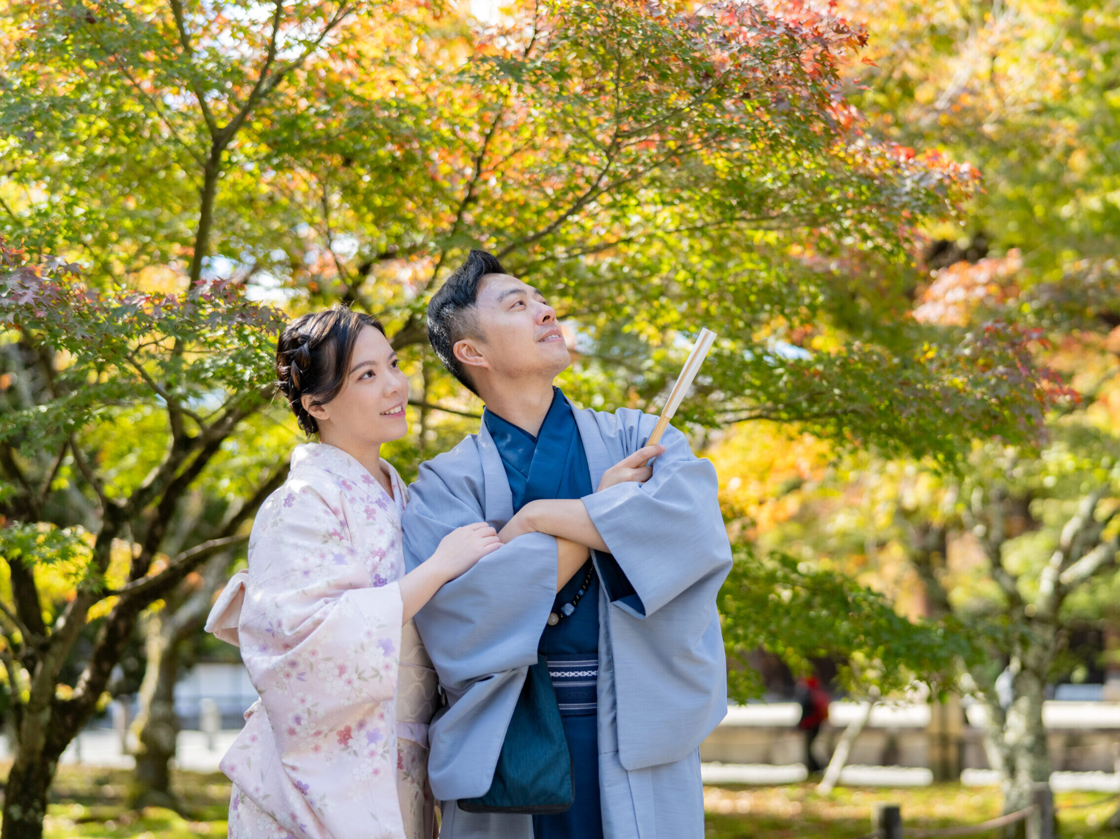 お揃いコーデやレトロ着物が人気。ヘアセット付きでデート映え間違いなし。