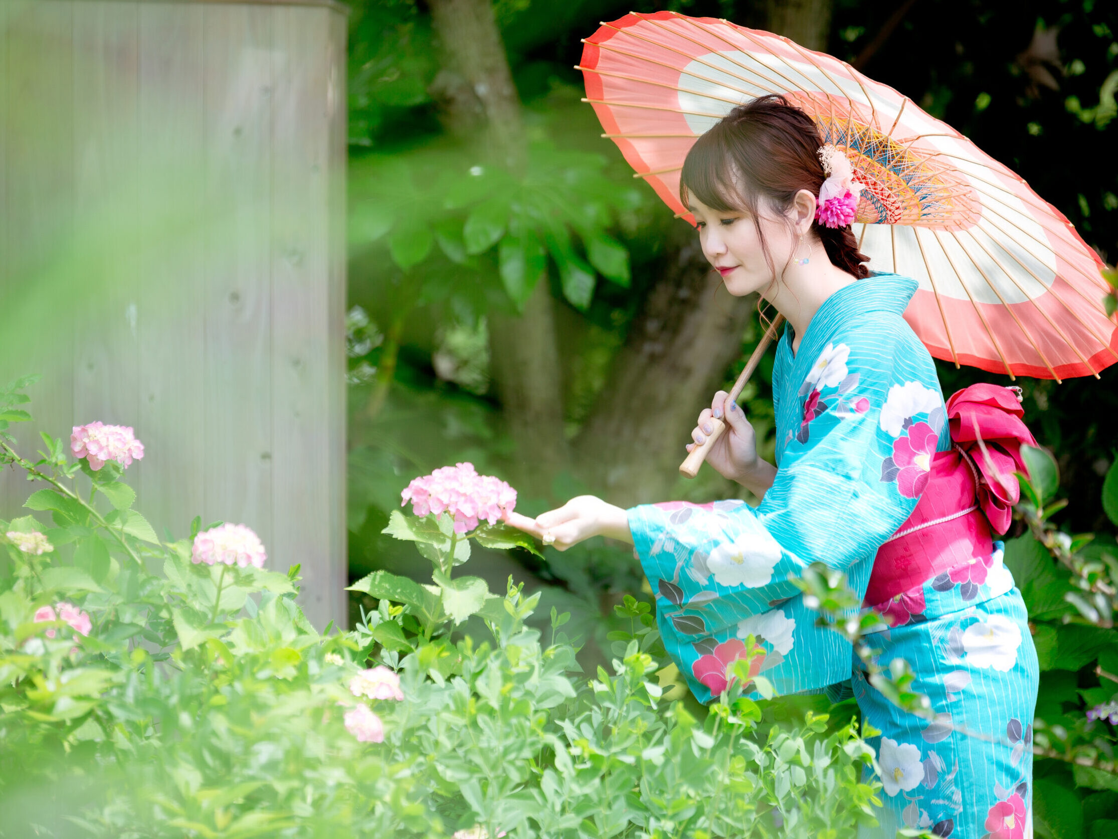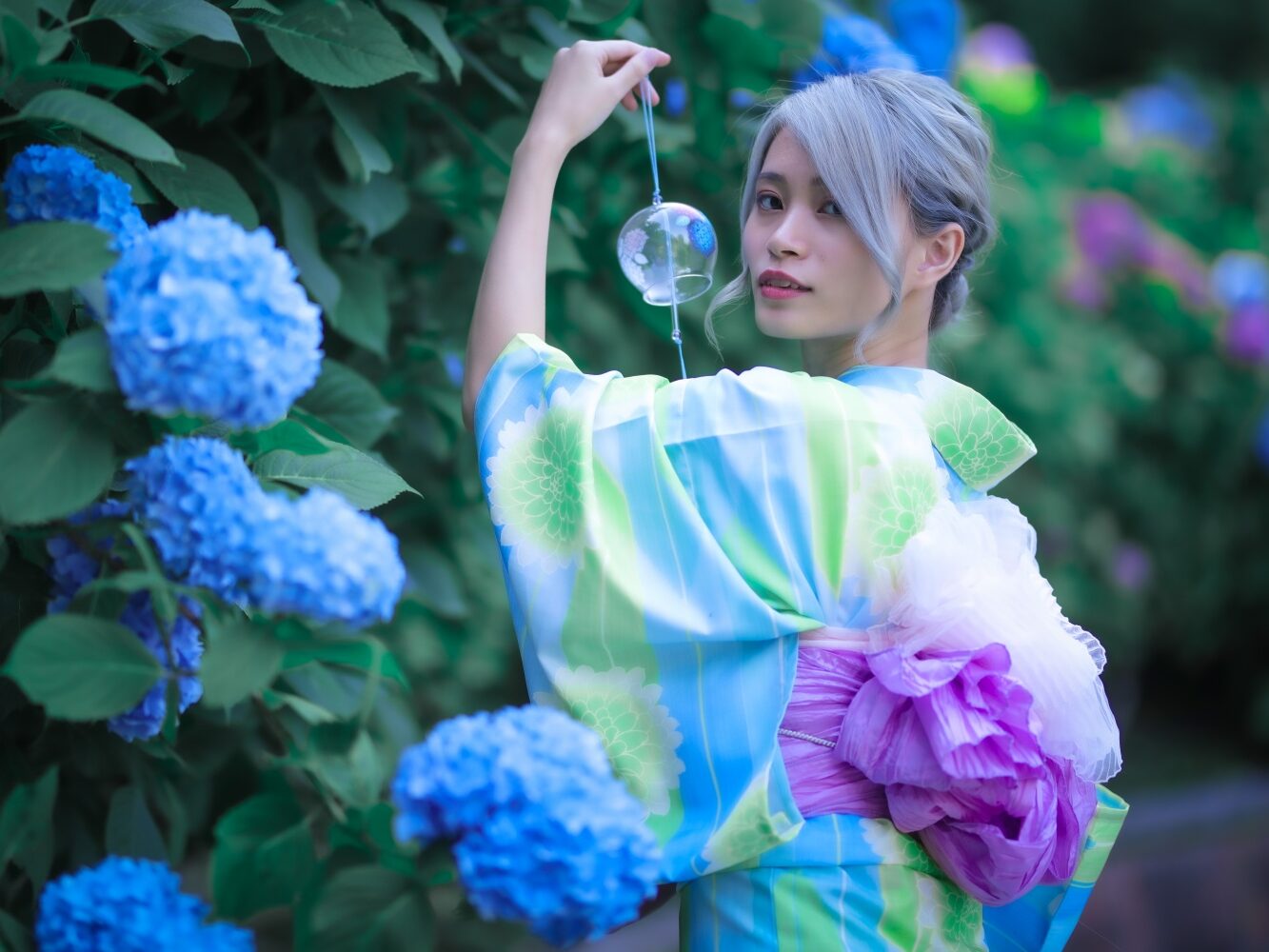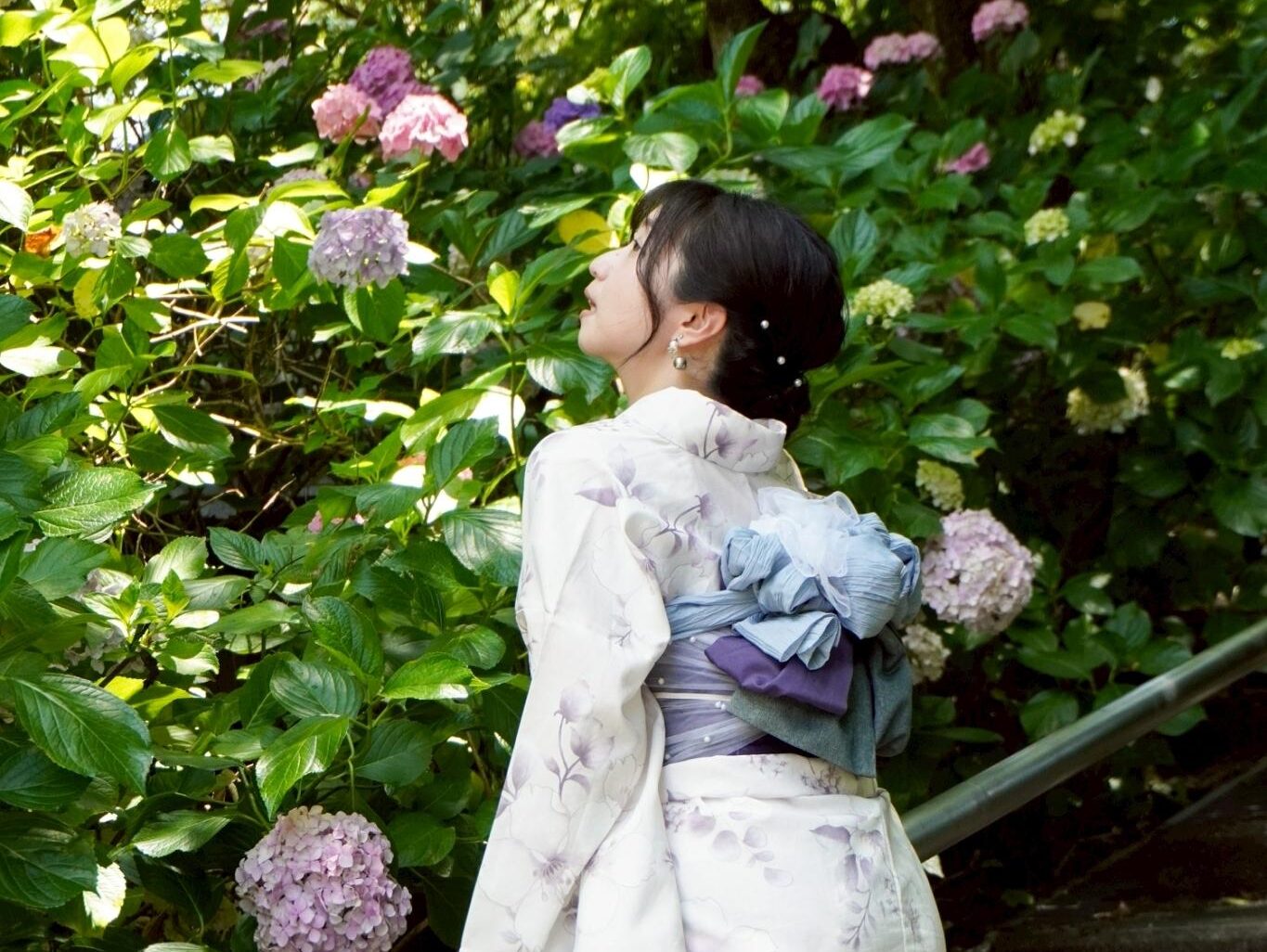 初夏の京都といえば「紫陽花(あじさい)」。 しっとりとした景色の中で楽しむ紫陽花は、着物との相性も抜群です。