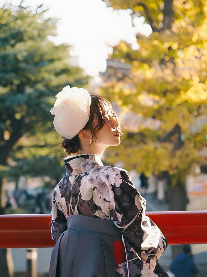 成人式さながらの華やか振袖で、特別な日を演出。豪華な装いで写真映え間違いなし。