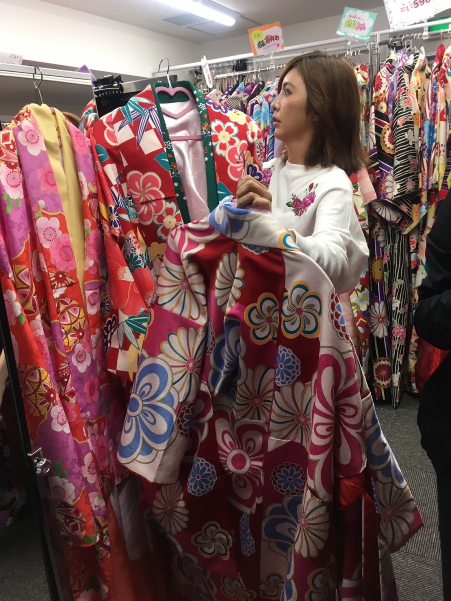 「どういう感じが似合う?」「どれが日本的?」とたくさんご質問をいただき、プロデューサーさんとも相談しながらこの赤を選ばれました。とてもお似合いですね!