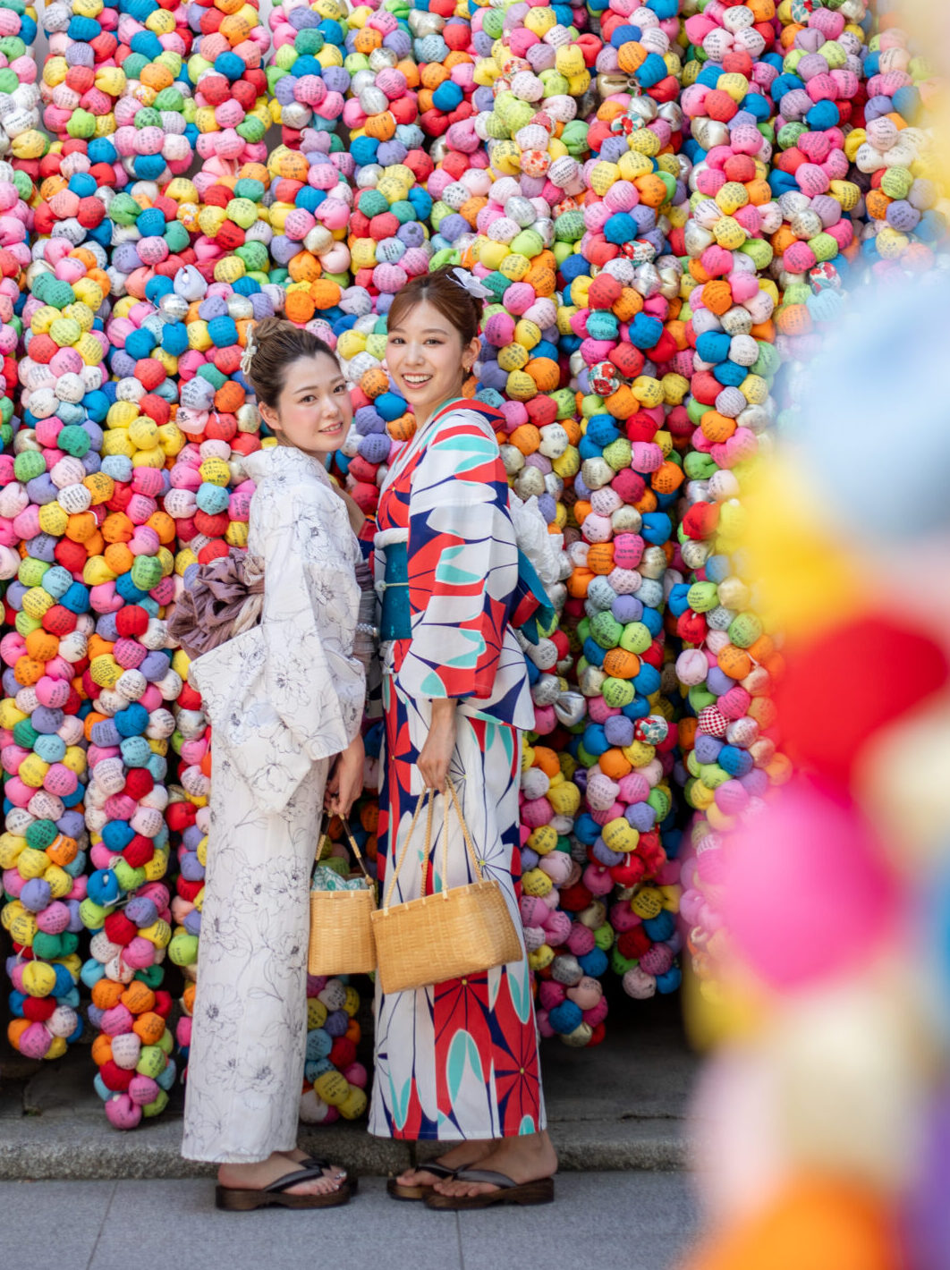 《京都愛和服 清水本店》一出門就是京都絕景!雄偉的「五重塔」美景觸手可及,彷彿穿越時光,沉浸在古都的浪漫氛圍中。步行1分鐘即可抵達IG爆紅景點「八阪庚申堂」,繽紛球球掛滿寺院,怎麼拍都上鏡!