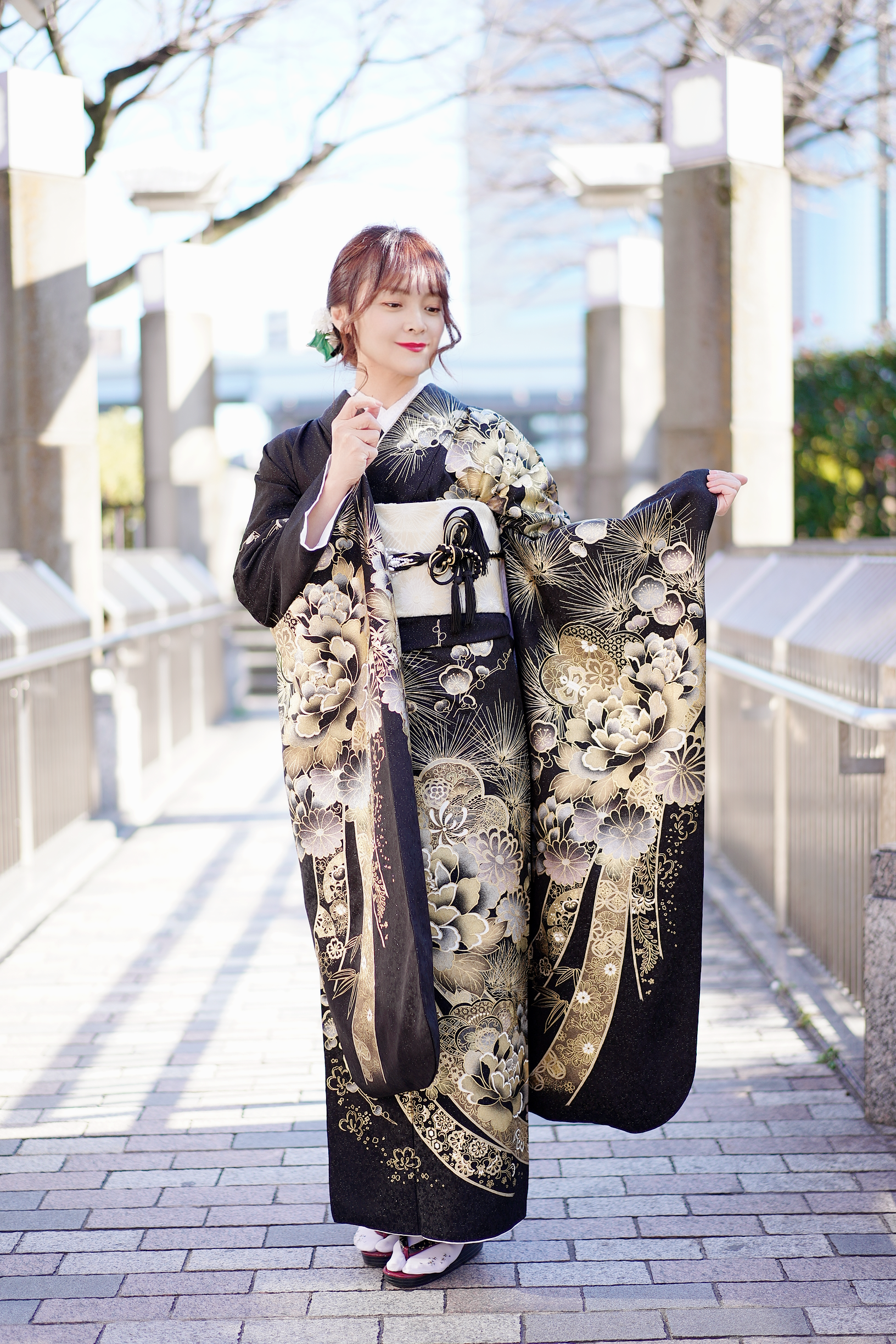 特別な日にふさわしい贅沢な装いを楽しめる高級な振袖の写真をご紹介します。金彩や銀彩をあしらった白や黒の振袖は、華やかでありながら気品あふれるデザインが特徴です。トレンドを押さえた豪華な色柄の振袖は、成人式や結婚式の参列など、大切なシーンをより一層引き立てます。