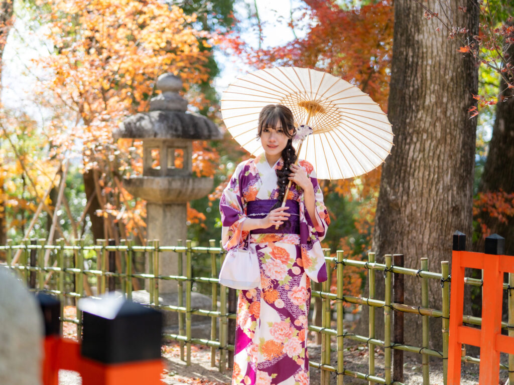紅葉に彩られる秋の京都。和服姿が映える絶景スポットで、心に残る一枚を。