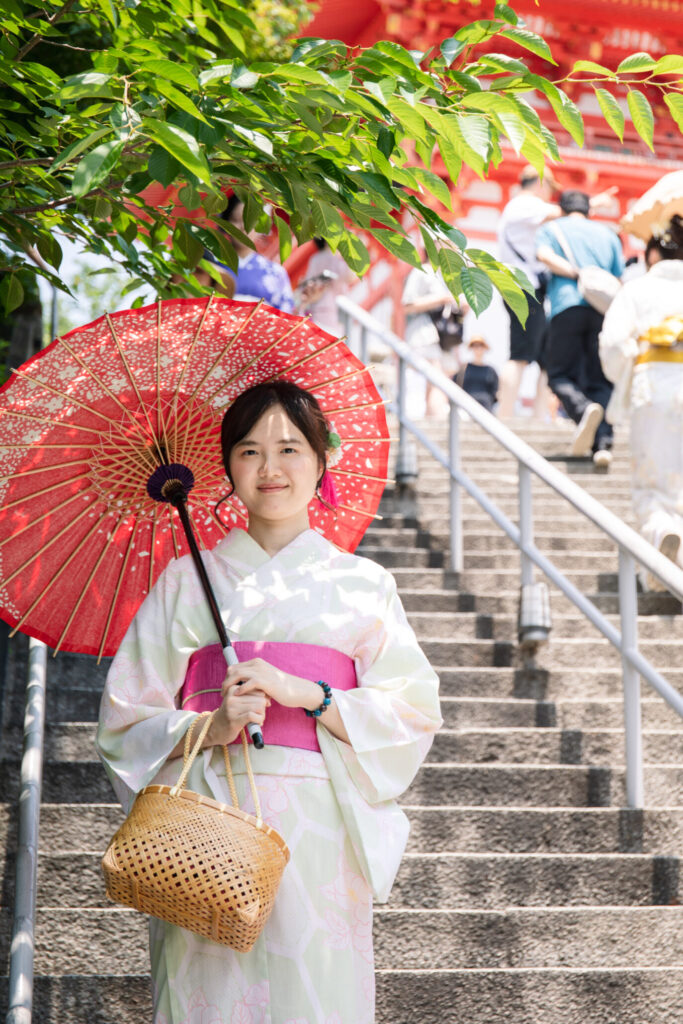 For location photo shoots at “Aiwafuku Fushimi Inari Store”, the top recommendation is of course Fushimi Inari Taisha. The famous Senbon Torii (thousand torii gates) creates a truly magical backdrop for kimono photography, with its striking red tunnels and the vivid vermilion main shrine highlighting the elegance of traditional attire. Another spot not to be missed is Higashimaru Shrine, located within the Fushimi Inari grounds. Known for its countless paper cranes, it offers a calm and serene setting for unique photos.