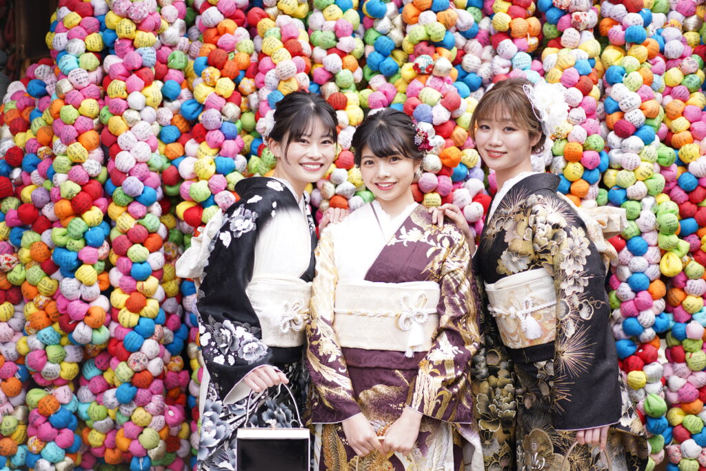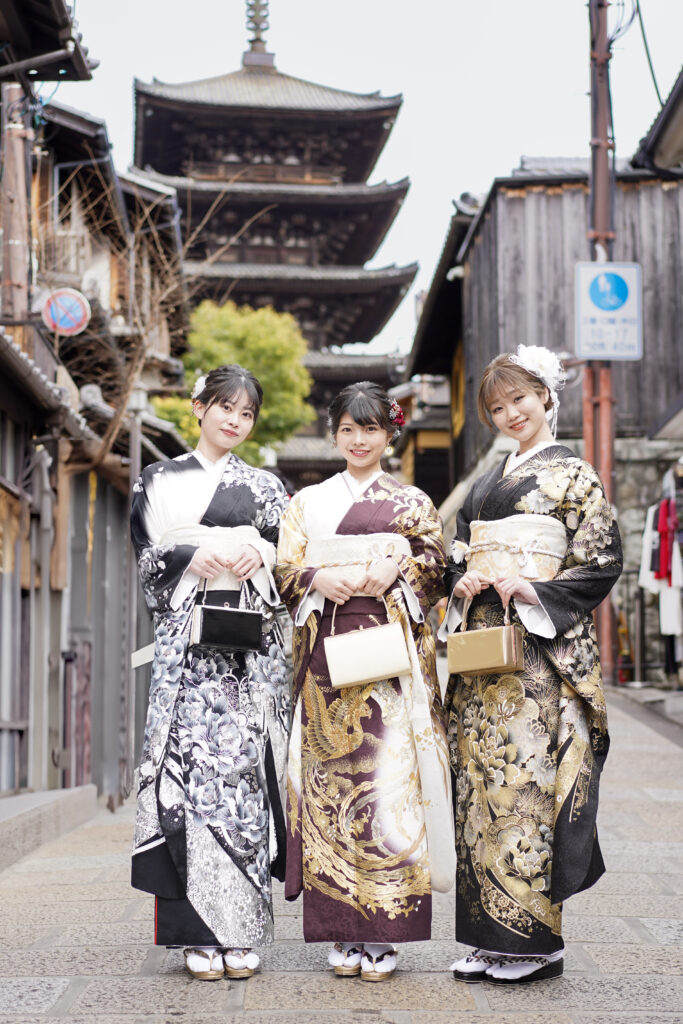 Furisode, worn for coming-of-age ceremonies and special occasions, features vibrant colors and long, graceful sleeves — perfect for creating lifelong memories in photos.