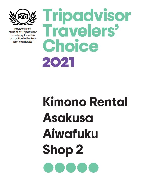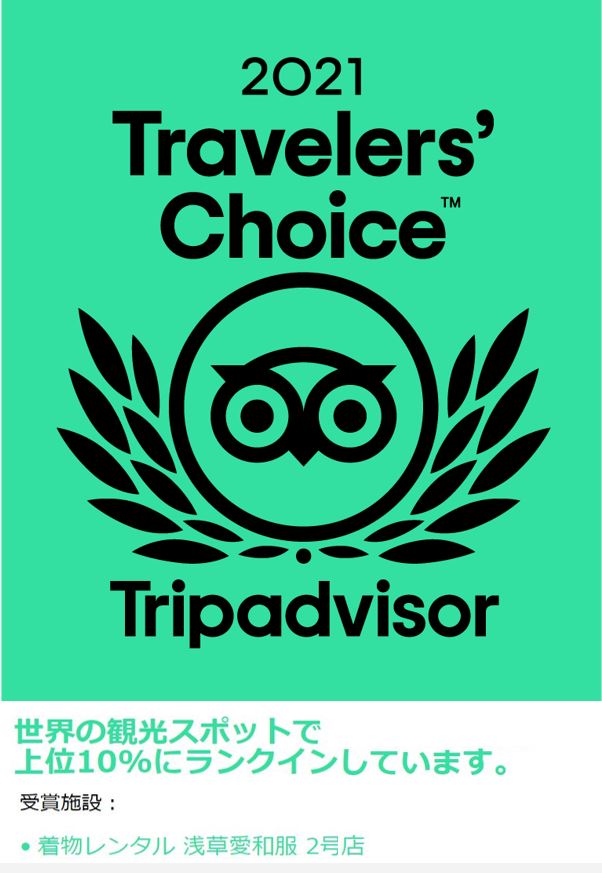 着物レンタル 浅草愛和服は、世界で最も活用されている旅行コミュニティサイト「トリップアドバイザー」 の「2021年トラベラーズチョイス・アワード」を受賞しました??