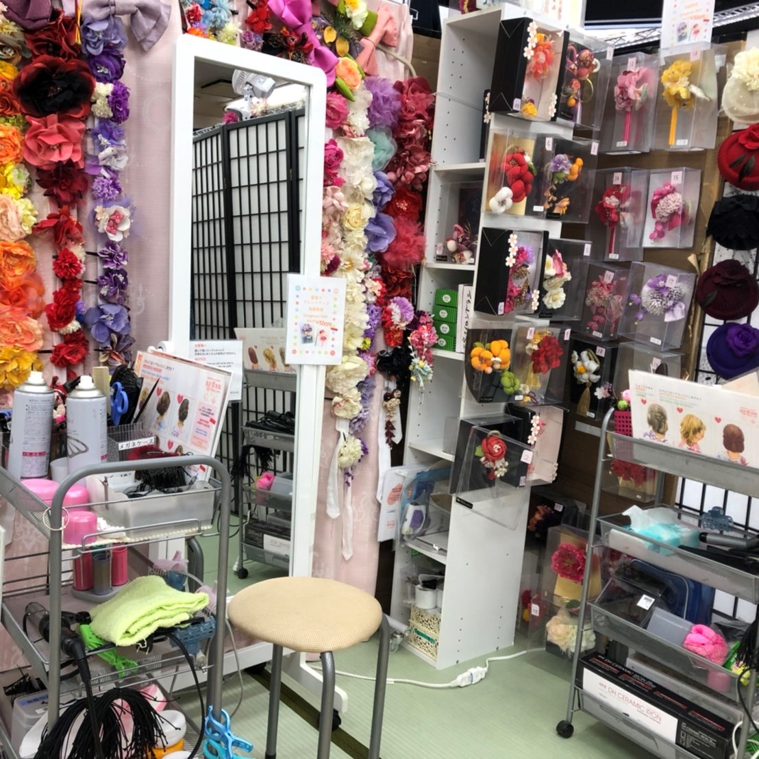 ♦この時期に待合室を設置しておりませんため、お着物をレンタルされないお客様は店内でお待ちいただくことができません。お手数ですがお支度が出来上がる頃にお迎えに来てくださるようにお願い致します。