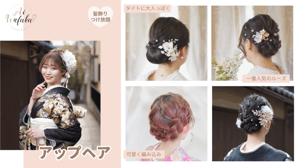 愛和服にはヘアーセット・髪飾りも含まれているのでお得です。