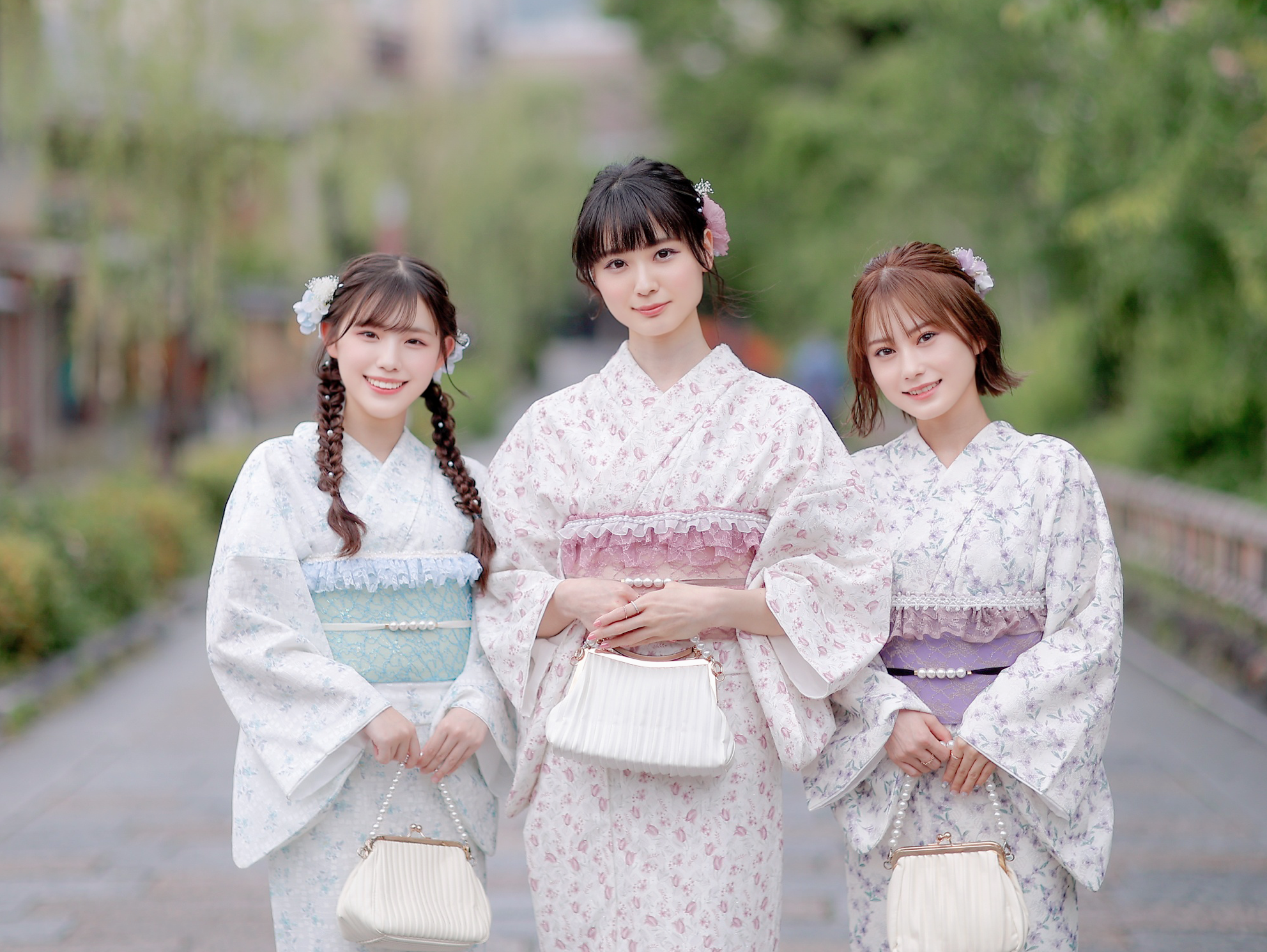 淡色女子にレトロガリーな淡いレース色は5色からお好きなレース着物をお選び頂けます。優しく女の子らしい淡い色の着物が大人気です。