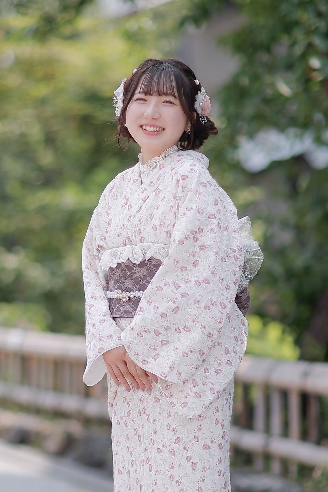 店内には厳選された正絹やレース着物、レトロモダン着物などを豊富に取りそろえ、帯や小物まで自由にコーディネート可能です。経験豊富なスタッフが一人ひとりに合わせて丁寧に着付けを行い、プロによるヘアセットで華やかに仕上げます。