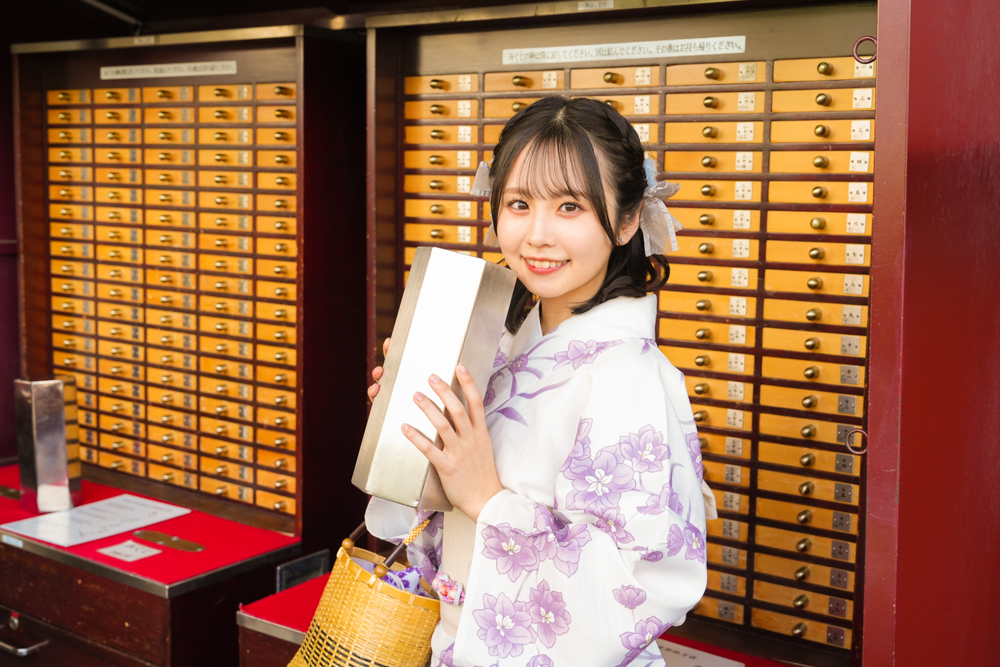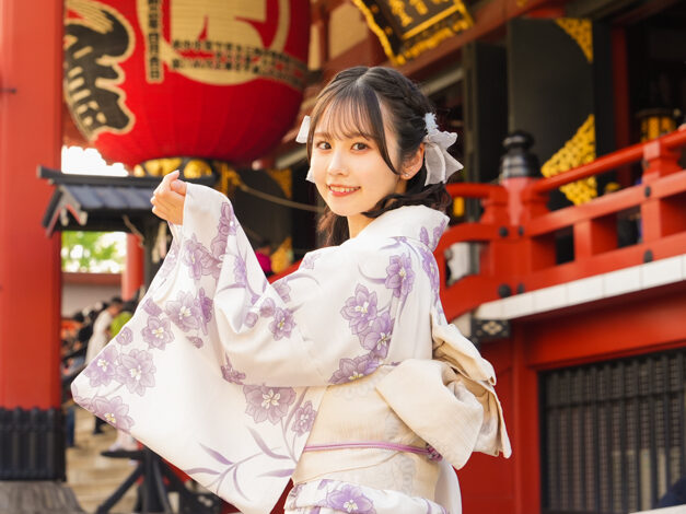 古くからの寺社仏閣や商店街が残る浅草は、浴衣が風景に自然に馴染む場所。レトロな街並みと伝統的な和装は相性抜群です。