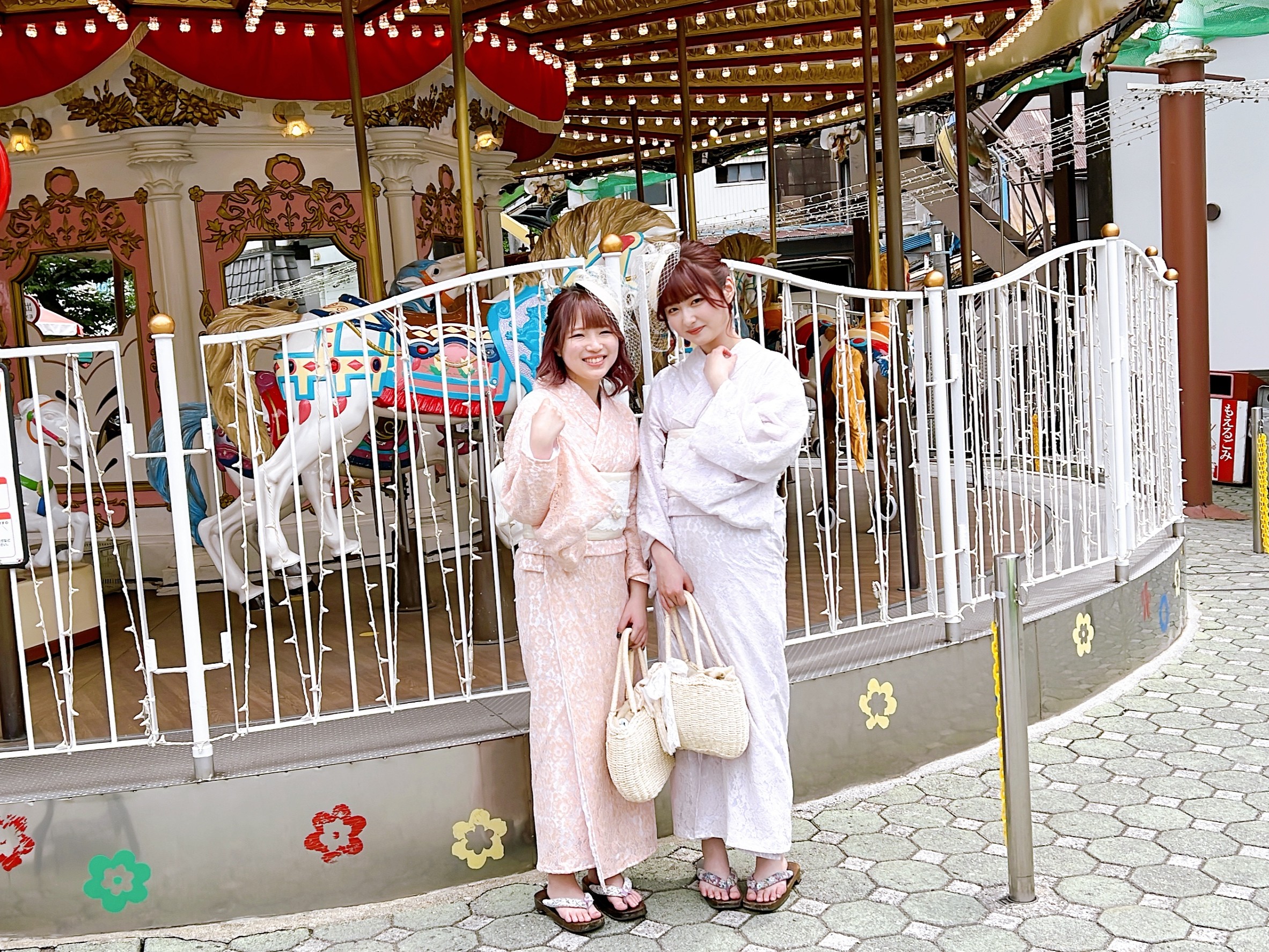 友達同士で同じ柄や色違いの浴衣を着る“双子コーデ”もSNS映え抜群。小物や髪型まで揃えると、さらに一体感のある写真に仕上がります。