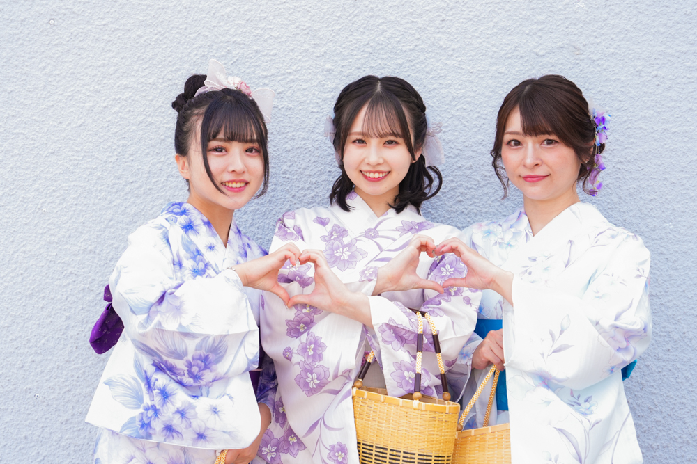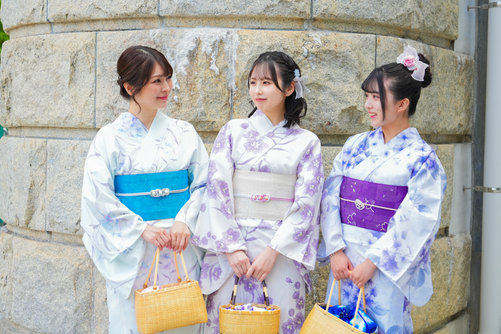 愛和服では、経験豊富なスタッフが体型・雰囲気に合った浴衣選びをサポート。ヘアセットもトレンド感あるスタイルに仕上げてくれるので、写真映え間違いなしです。