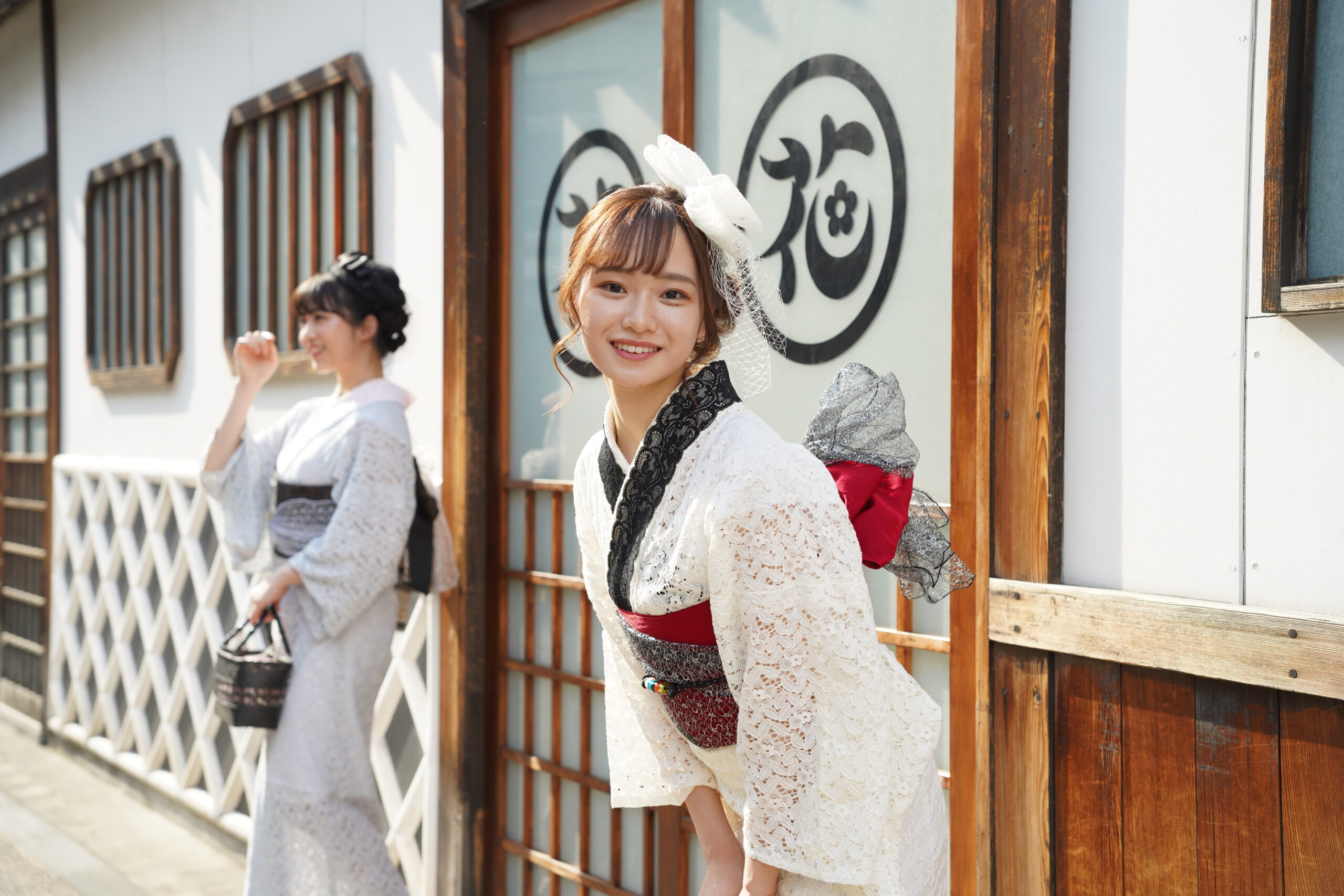 浅草エリアに複数店舗を展開する「愛和服」では、女性に人気のレース浴衣やトレンド柄も豊富に揃えています。着付け・ヘアセット込で、インスタ映えを意識したスタイリングもお任せ。